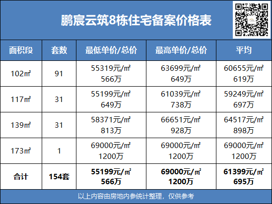 龙华区鹏宸云筑8栋住宅开盘备案价格表