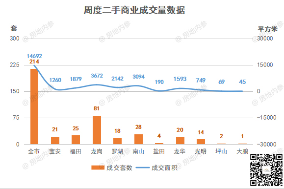 二手房商业成交方面,全市成交214套,成交量前三区域分别是: