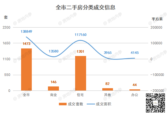 ♢总成交量:二手房成交1473套,环比↑8.39%,其中住宅成交1201套,环比↑8.39%
