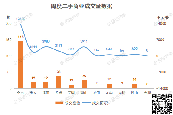 二手房商业成交方面,全市成交146套,成交量前三区域分别是: