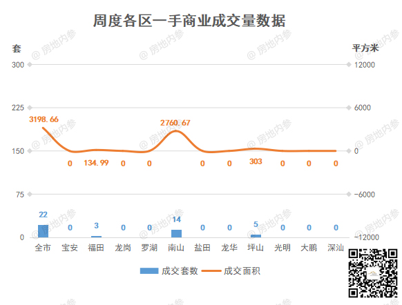 ②商业,成交22套,环比↓95.74%;成交面积3198.66㎡,环比↓90.17%;