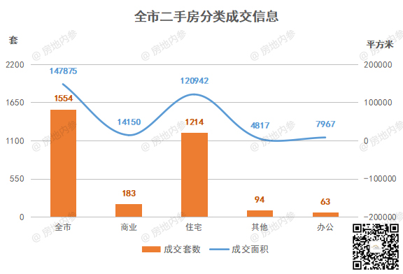 ♢总成交量:二手房成交1554套,环比↑50.87%,其中住宅成交1214套,环比↑41.99%