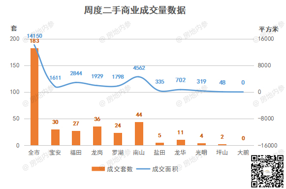 二手房商业成交方面,全市成交183套,成交量前三区域分别是: