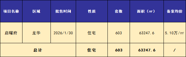 ■本周共1个项目获批预售,住宅批售共603套,面积约6.3万平米。