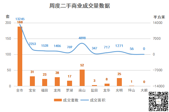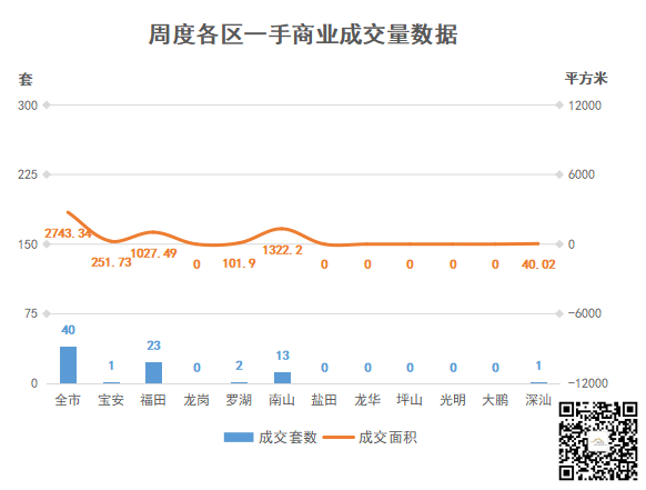 ②商业,成交40套,环比↑233.33%;成交面积2743.34㎡,环比↑314.68%;