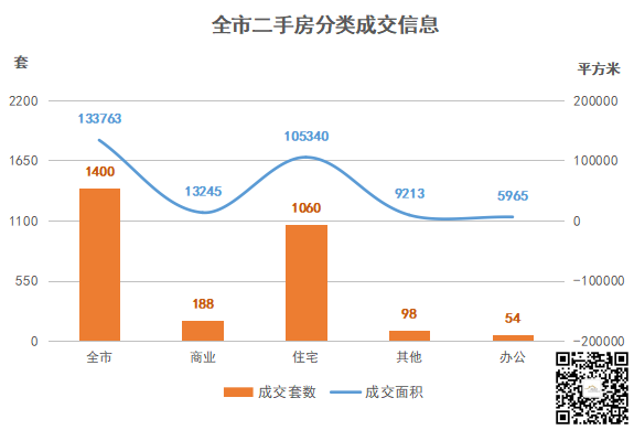 ♢总成交量:二手房成交1400套,环比↓14.63%,其中住宅成交1060套,环比↓15.61%
