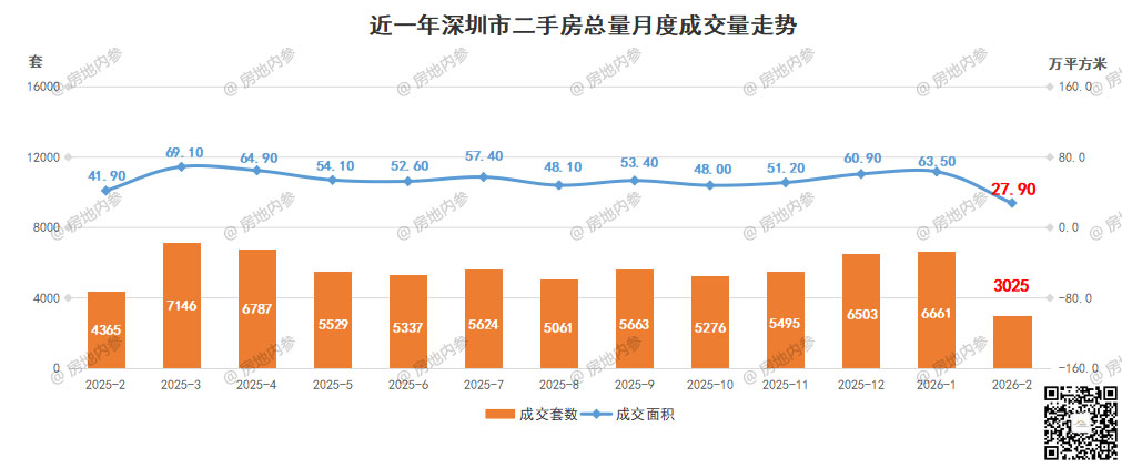 2026年2月,深圳全市一二手商品房成交简要: