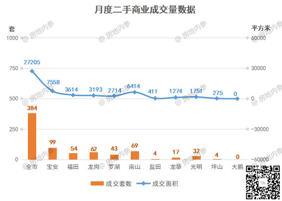 二手房商业成交方面,全市成交384套,成交量前三区域分别是:
