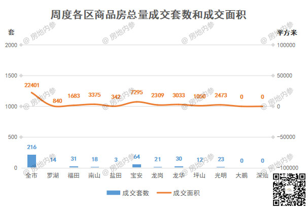 深圳全市开发商品房共成交216套;成交面积22401.01㎡。