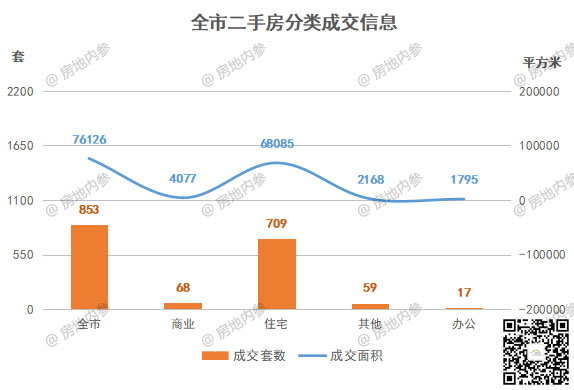 ♢总成交量:二手房成交853套,其中住宅成交709套