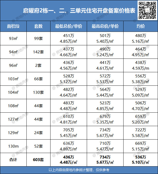 ♦备案产品:603套住宅,户型建面约93-130㎡,备案均价5.10万/㎡