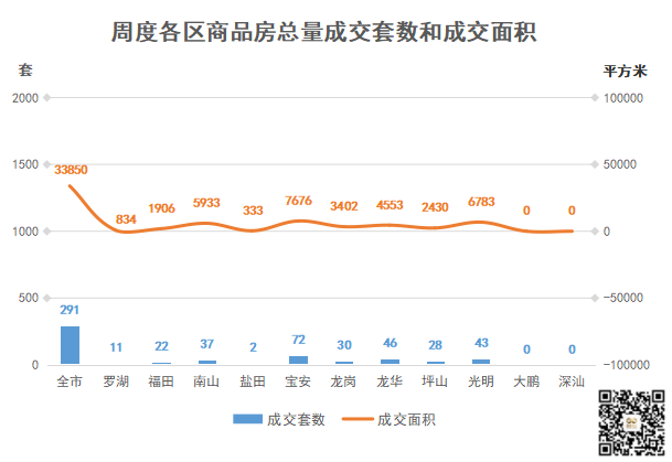 深圳全市开发商品房共成交291套,环比↑34.72%;成交面积33849.57㎡,环比↑51.11%。