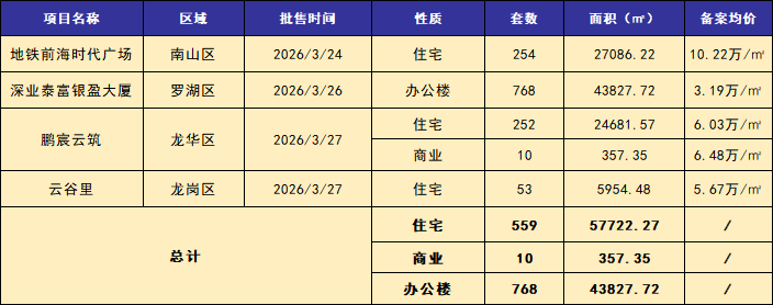 2026年12期(03月23日~03月29日),深圳全市一二手商品房成交简要: