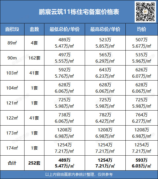 龙华区鹏宸云筑11栋住宅、商业开盘备案价格表