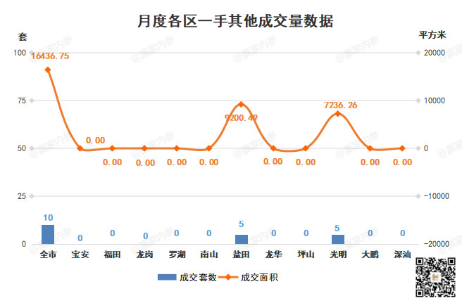 ■各区其他物业仅盐田区、光明区各成交5套,各成交面积9200.49㎡、7236.26㎡