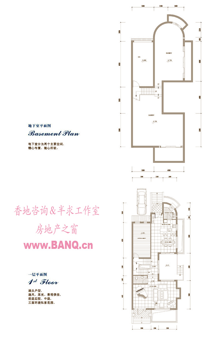 “招华·曦城南区”户型图:TH280D地下室、一层平面图