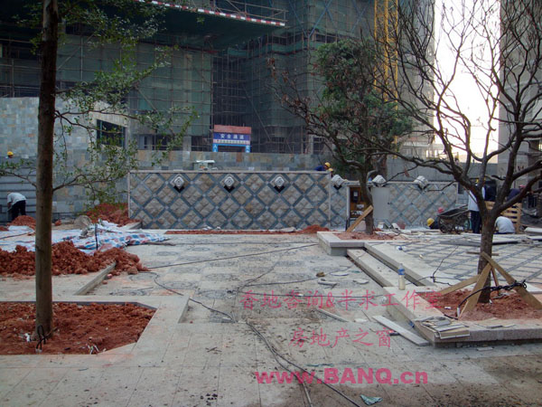 中海·阳光玫瑰园位于U形布局开口处的玫瑰幼儿园,只有三层,近期用来做销售中心,内部装修正在紧张进行,香地咨询·半求工作室&房地内参www.BANQ.cn仔细查看发现,玫瑰幼儿园的外墙除开玻璃和一小块是瓷砖以外,其余全部是花岗石贴面,包括阳台需贴砖部分,这是深圳住宅领域至今唯一的全岗石幼儿园。