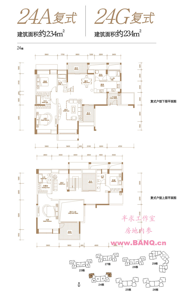 项目共计分三期开发,项目共计27栋住宅,其中一期开发为12栋多层住宅,二期为8栋11层小高层住宅,三期为7栋18层高层住宅。一、二期单位已经销售完毕,目前销售的是3期单位。3期建筑构成:7栋住宅,其中23#、27#、28#、29#楼为18层高层住宅,24#、25#、26#楼为上部两层复式房的12层小高层住宅。