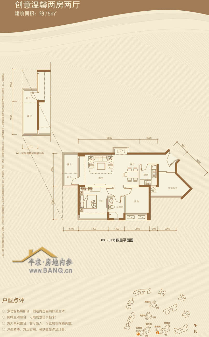 项目在进行建筑规划时因地制宜,保留了坡向和山体原貌,形成平地、缓坡、台地、坡地等不同基地形式,为住宅提供丰富地形条件,建筑轮廓线曲折优美。同时结合山地地形,形成对西北面的快速干道(水官和深峰)的天然屏障,有效的遮挡了噪音影响。