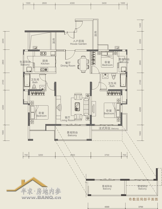 11、12、13栋B单元 A+B户型 建筑面积:约131.74㎡