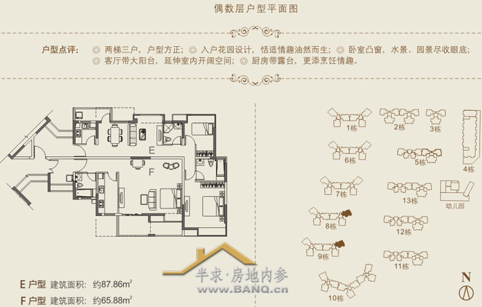 8、9栋A单元 E+F户型 建筑面积:约135.02㎡