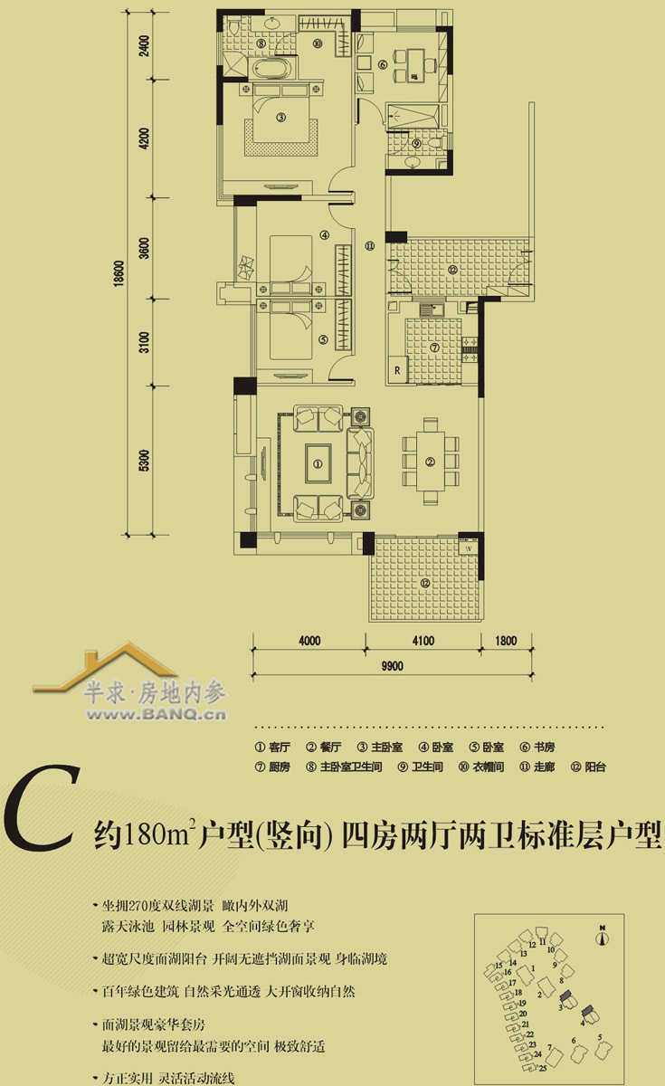 其中,180平米竖厅双湖户型,是松山湖中心观湖景深最长的高层产品之一,15.2M净面宽,尺度优于目前市场上的常规别墅配置,主要起居空间(2卧室+1客厅)均能拥有湖景视野。180平米横厅双景户型,拥有私家电梯厅+私家前花园,媲美别墅的独立门户感受,大横厅开间8.2米,附设超大观景阳台,无限湖景。(06)