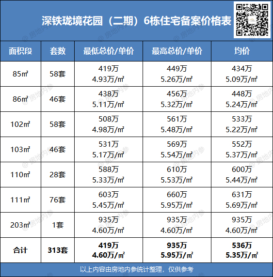 龙华区深铁珑境花园(二期)6栋住宅开盘备案价格表