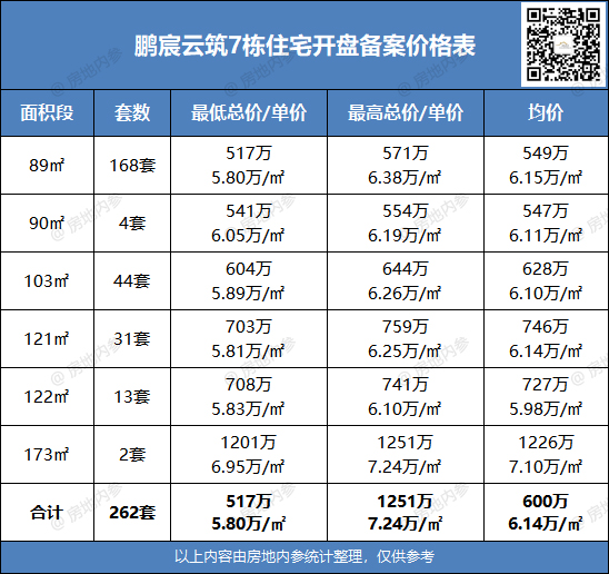 龙华区鹏宸云筑7栋住宅、商业开盘备案价格表